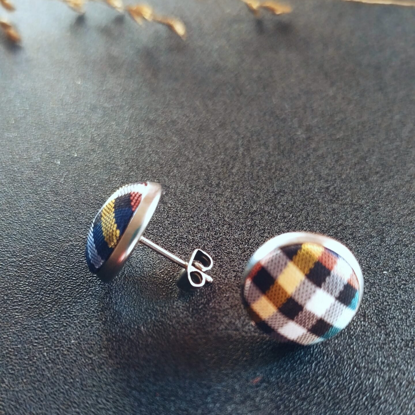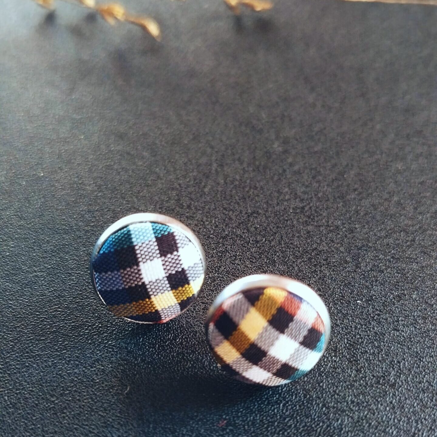 • Material: 304 Stainless Steel, Glass and Tartan satin fabric cabochon