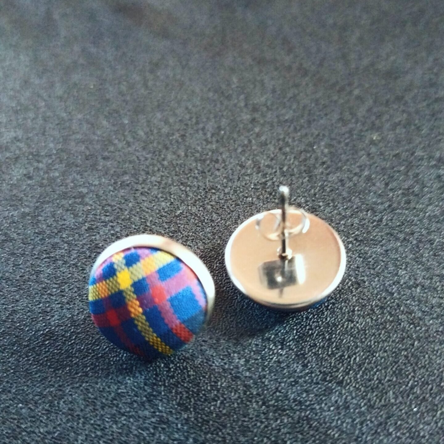 - Material: 304 Stainless Steel, Glass and Tartan satin fabric cabochon