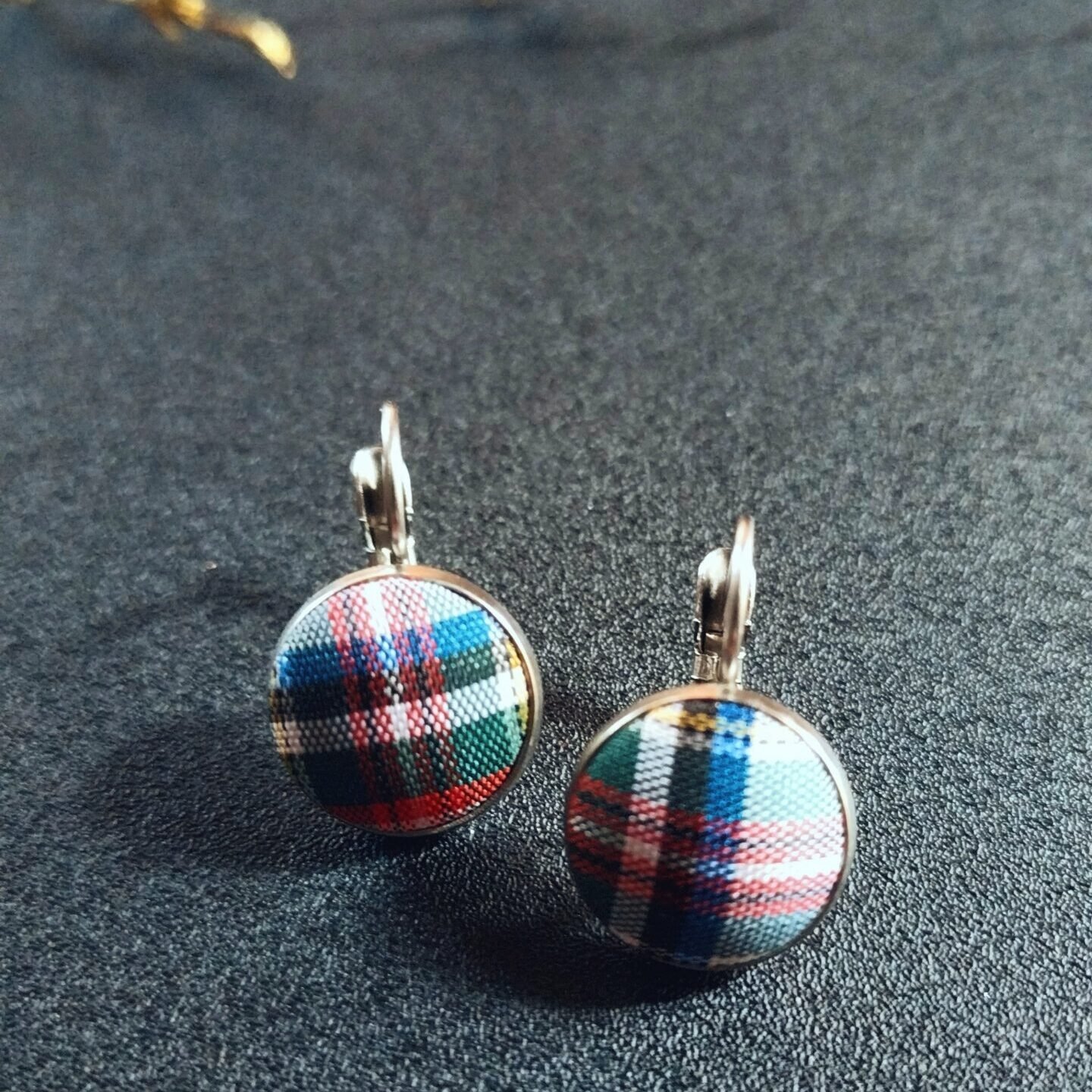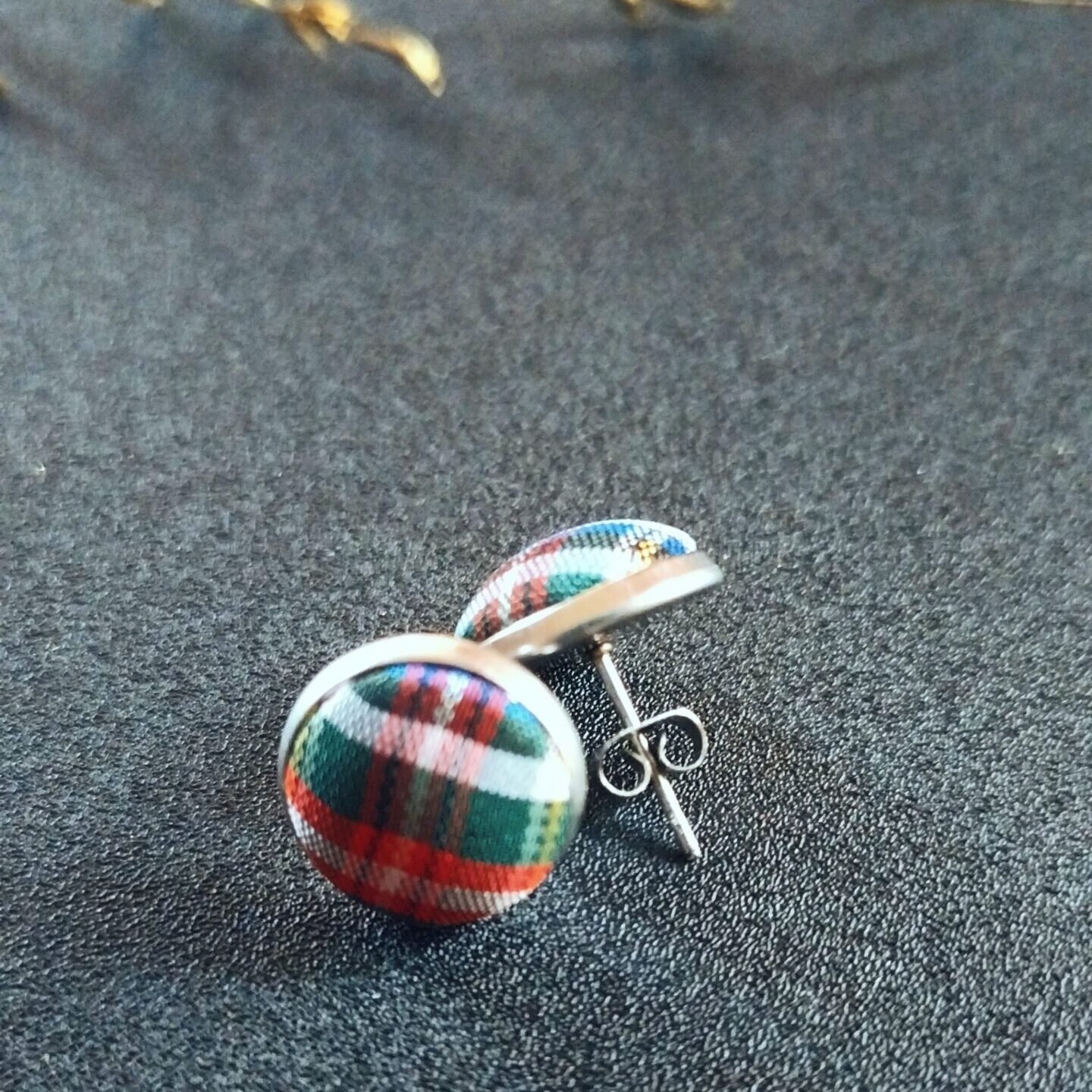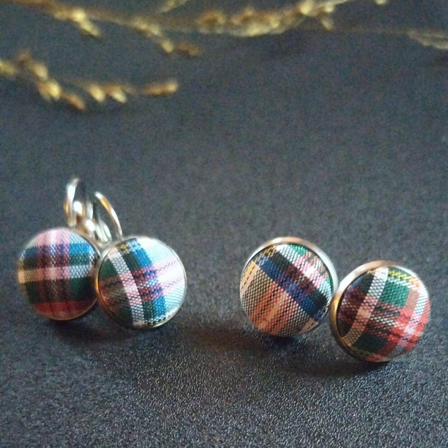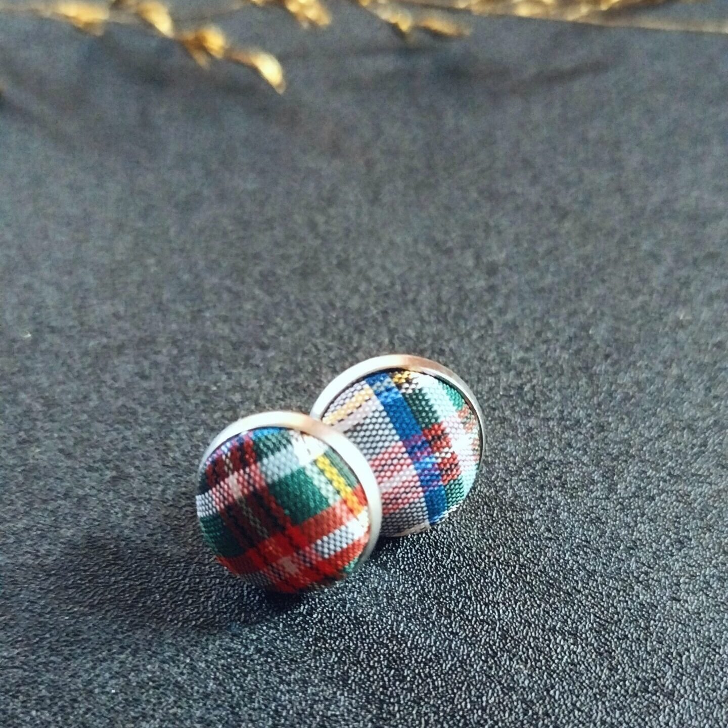 - Material: 304 Stainless Steel, Glass and Tartan satin fabric cabochon